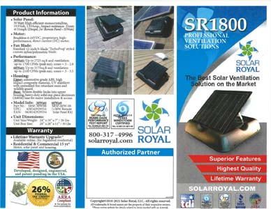 Benefits of utilizing a Solar Royal – Solar Powered Attic Ventilation unit includes: